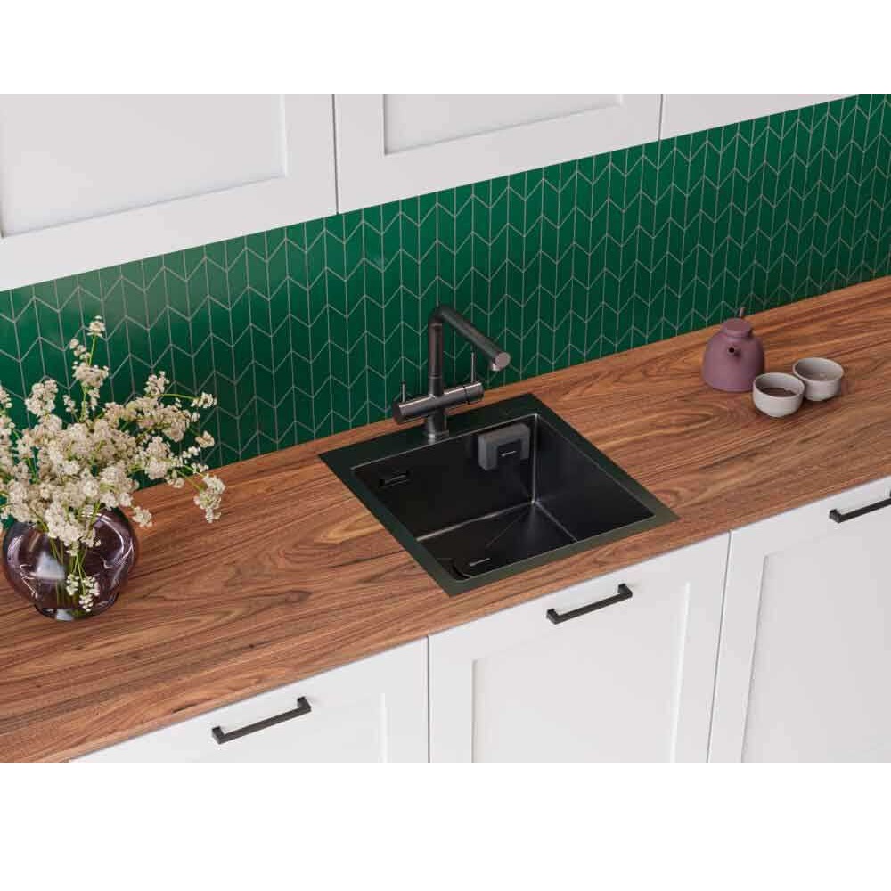 Благодаря магнитному креплению, SH-01 легко фиксируется в мойках из нержавеющей стали — без инструментов, скотча и повреждений поверхности. Для моек из композитных материалов в комплекте предусмотрена двусторонняя клейкая лента.