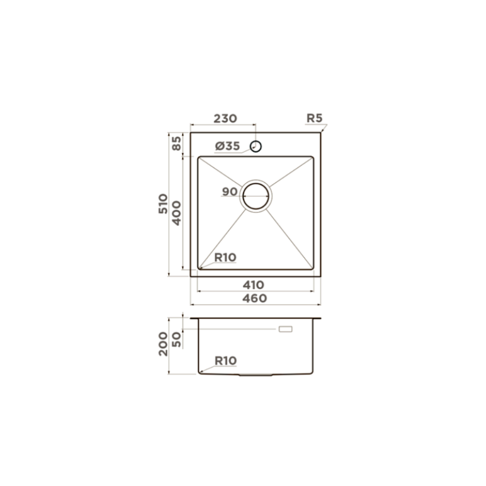 Мойка кухонная Omoikiri из коллекции Akisame 46-GM имеет размеры 460х510 мм., изготовлена из нержавеющей стали. Форма — прямоугольная, одна чаша с отверстием для смесителя. Сифон в комплекте. Ширина чаши 41. Врезной монтаж.