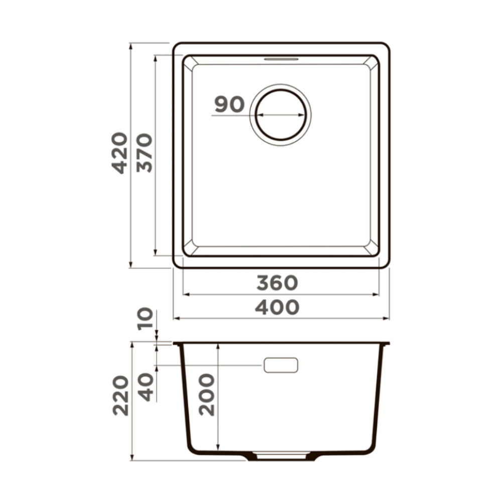 Мойка кухонная Omoikiri из коллекции Kata 40-U-BL имеет размеры 400х420 мм., изготовлена из искусственного гранита. Форма — прямоугольная, одна чаша без отверстия для смесителя. Сифон в комплекте. Ширина чаши 36. Подстольный монтаж