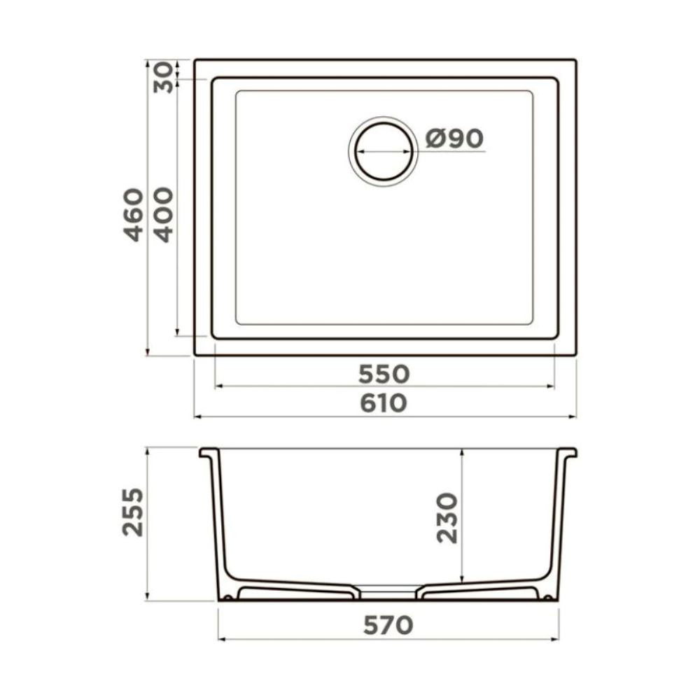 Мойка кухонная Omoikiri из коллекции Okinoshima 61-U/I-RG имеет размеры 610х460 мм., изготовлена из искусственной керамики. Форма — прямоугольная, одна чаша без отверстия для смесителя. Сифон в комплекте. Ширина чаши 55. Подстольный и врезной монтаж.