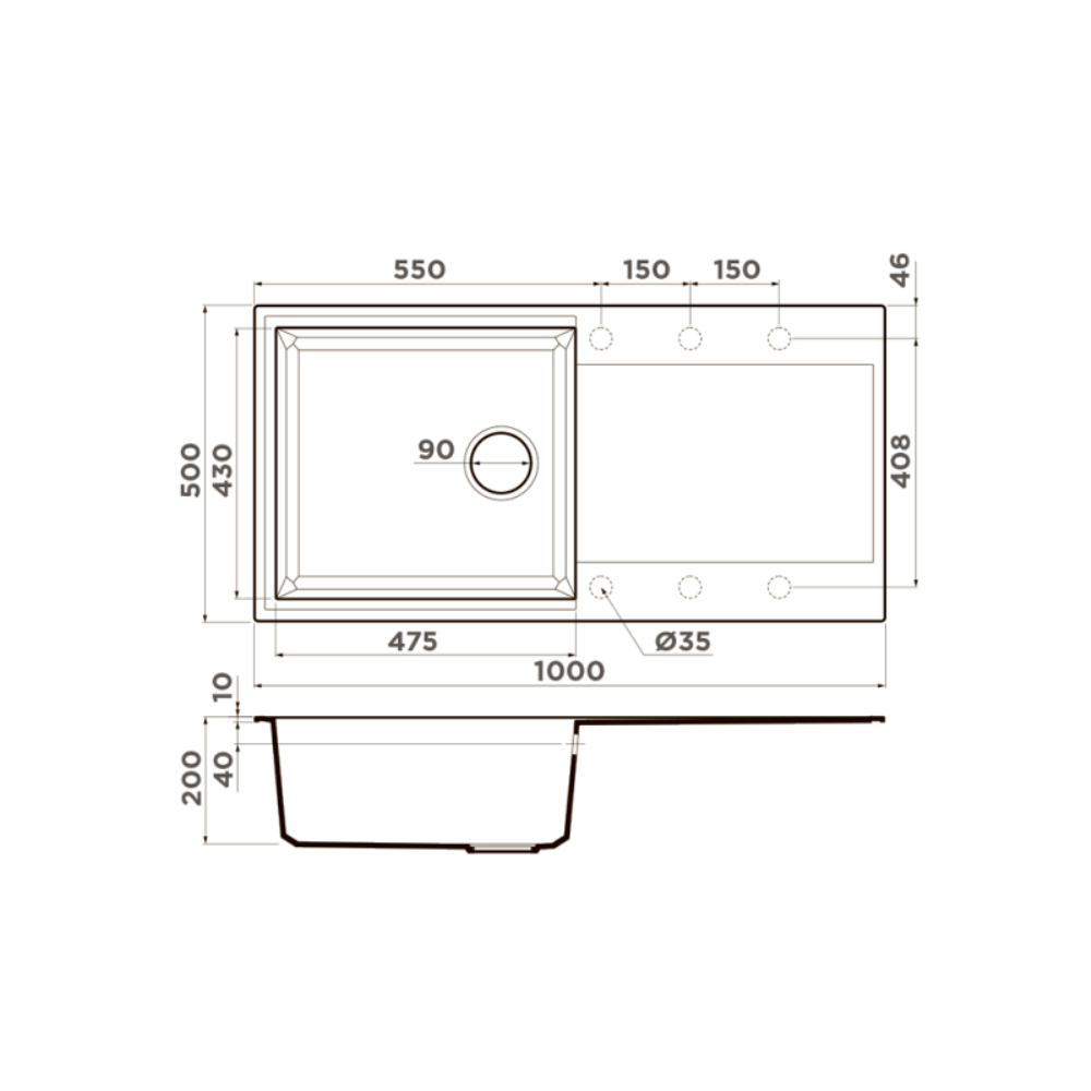 Мойка кухонная Omoikiri из коллекции Sakaime 100-BL имеет размеры 1000х500 мм., изготовлена из искусственного гранита. Форма — прямоугольная, одна чаша без отверстия для смесителя. Сифон в комплекте. Ширина чаши 47,5. Врезной монтаж. Имеется крыло.