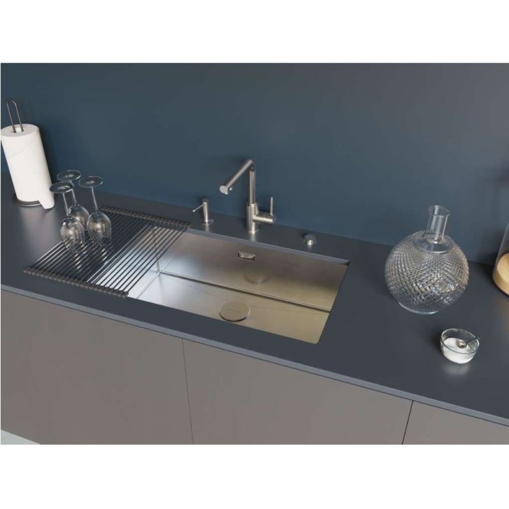 Мойка кухонная Omoikiri из коллекции Taki 74-U/IF-IN имеет размеры 740х440 мм., изготовлена из нержавеющей стали. Форма — прямоугольная, одна чаша без отверстия для смесителя. Сифон в комплекте. Ширина чаши 70. Подстольный и врезной монтаж, монтаж вровень.
