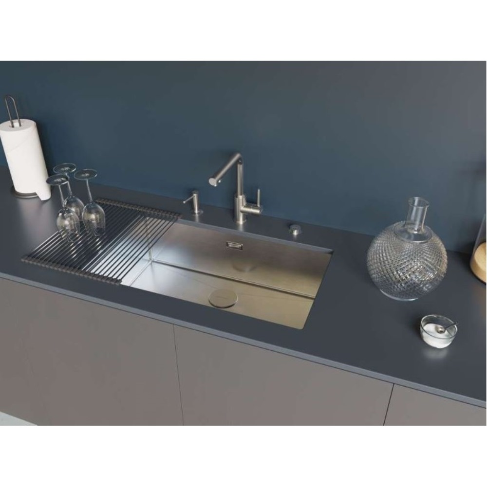 Мойка кухонная Omoikiri из коллекции Taki 74-U/IF-LG имеет размеры 740х440 мм., изготовлена из нержавеющей стали. Форма — прямоугольная, одна чаша без отверстия для смесителя. Сифон в комплекте. Ширина чаши 70. Подстольный и врезной монтаж, монтаж вровень.