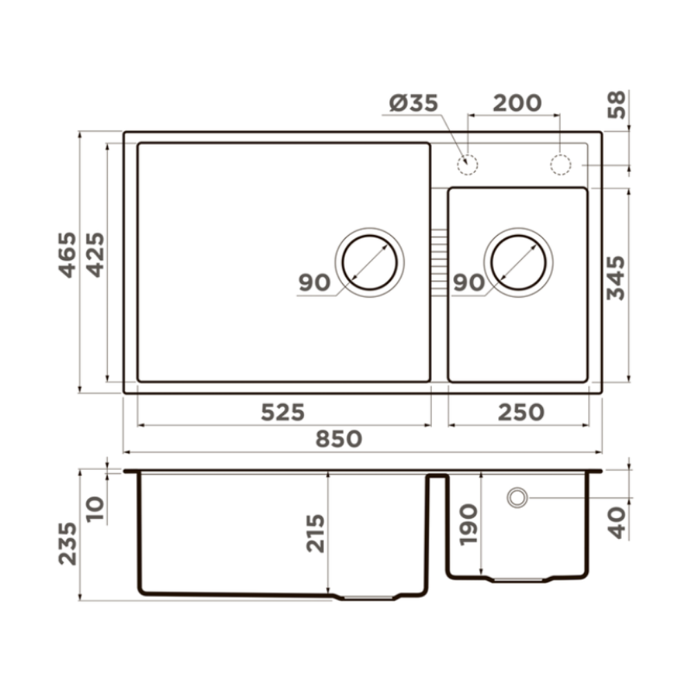 Мойка кухонная Omoikiri из коллекции Tedori 85-2-U-WH имеет размеры 850х465 мм., изготовлена из искусственного гранита. Форма — прямоугольная, одна чаша без отверстия для смесителя. Сифон в комплекте. Ширина чаши 52,5. Подстольный монтаж. Имеется дополнительная чаша.