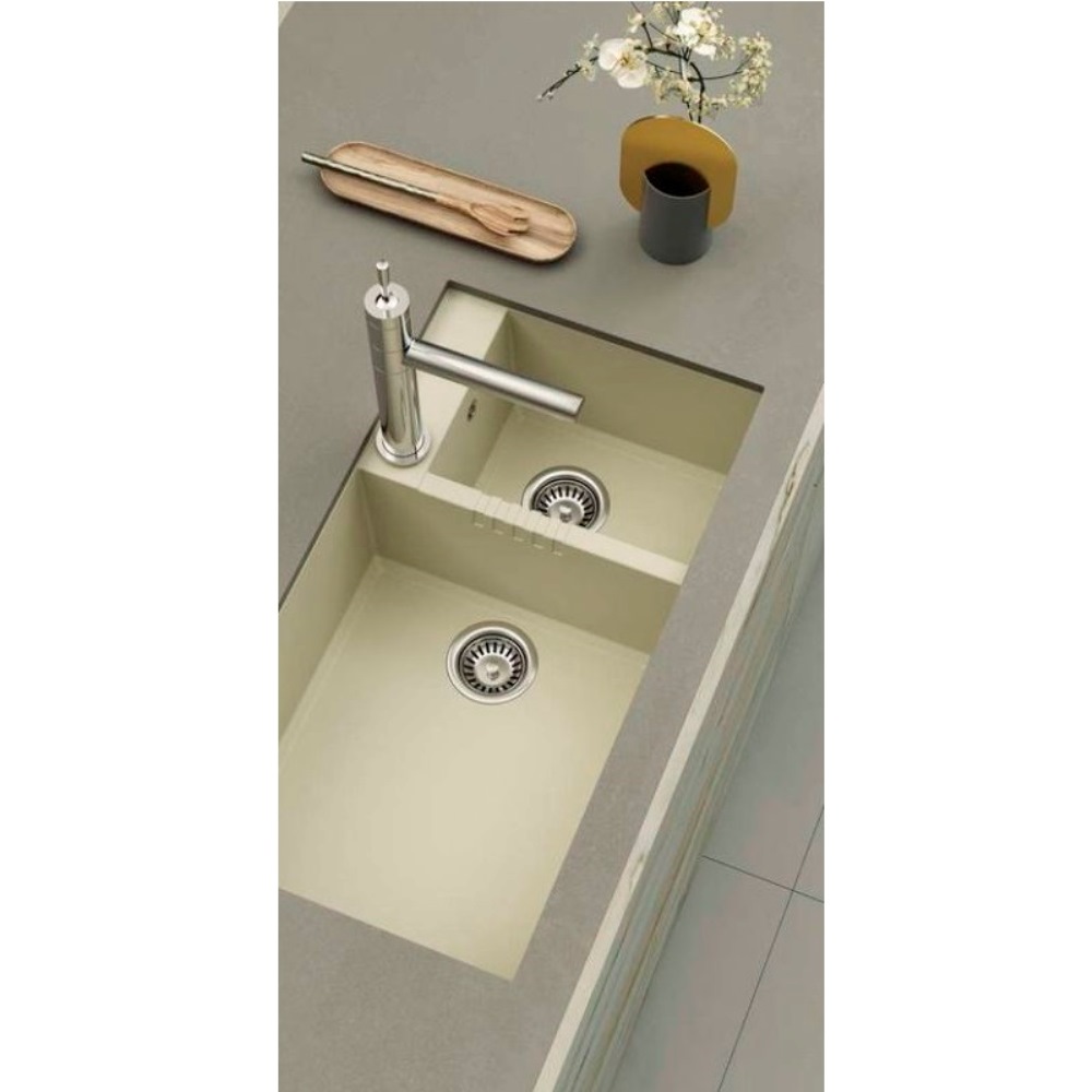 Мойка кухонная Omoikiri из коллекции Tedori 85-2-U-PL имеет размеры 850х465 мм., изготовлена из искусственного гранита. Форма — прямоугольная, одна чаша без отверстия для смесителя. Сифон в комплекте. Ширина чаши 52,5. Подстольный монтаж. Имеется дополнительная чаша.