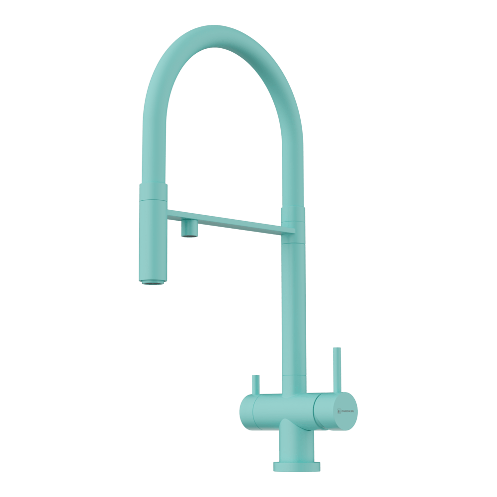 Смеситель для кухни Omoikiri Kanto с подключением фильтра оснащен рычажным управлением для регулировки температуры и напора воды. Горизонтальный монтаж на 1 отверстие. Гибкий излив 220 мм.