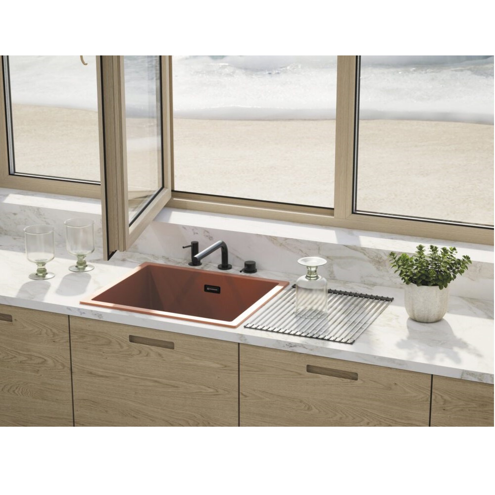 Смеситель для кухни Omoikiri Nara 2 Plus-S с подключением фильтра оснащен рычажным управлением для регулировки температуры и напора воды. Горизонтальный монтаж на 2 отверстия. Вытяжной излив 216 мм.