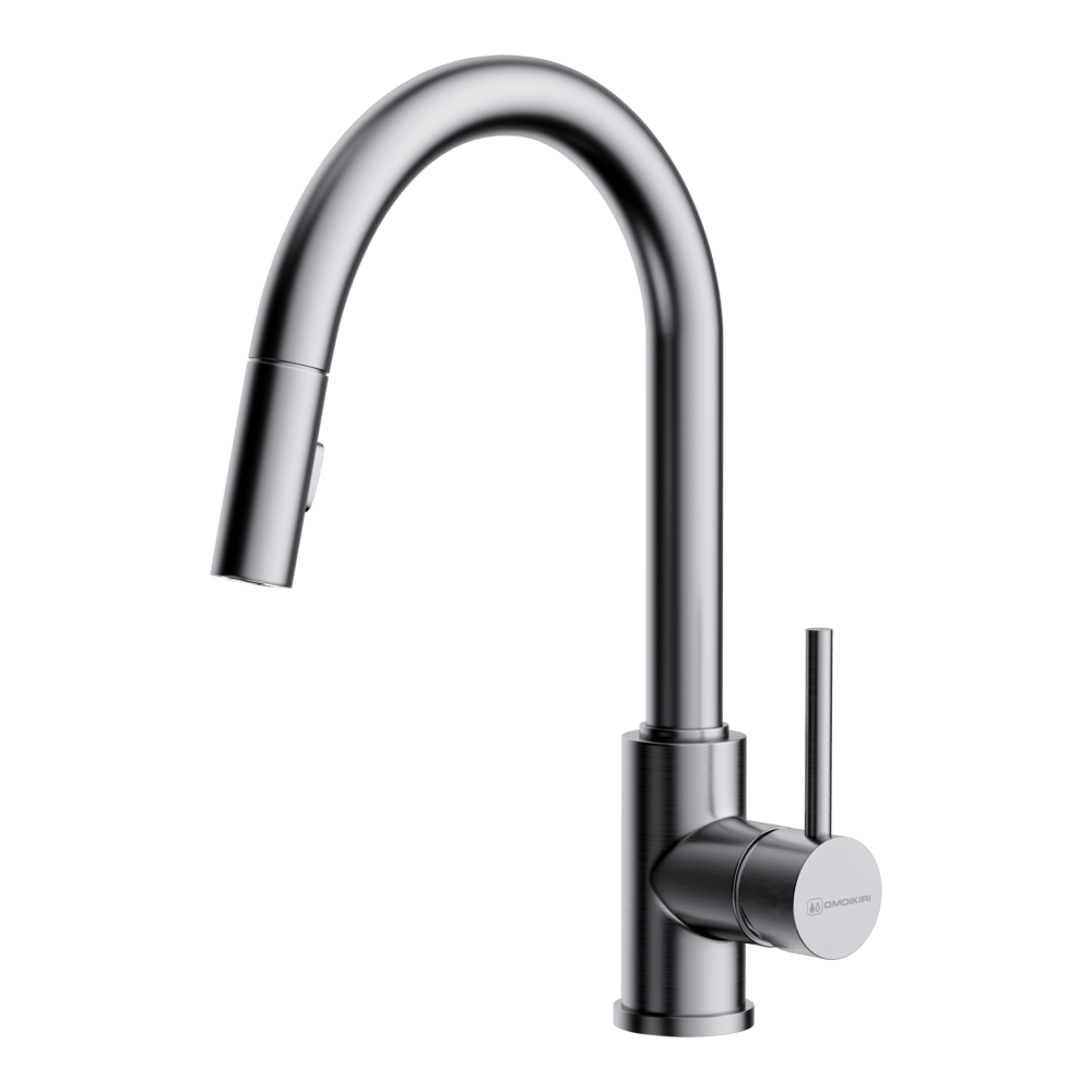 Смеситель для кухни Omoikiri Shinagawa оснащен рычажным управлением для регулировки температуры и напора воды. Горизонтальный монтаж на 1 отверстие. Вытяжной излив 192 мм.
