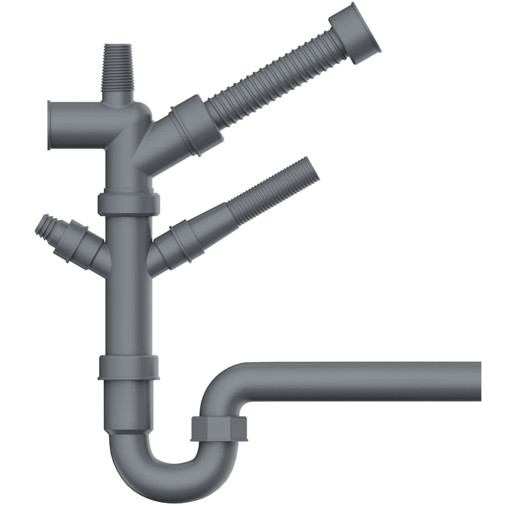 Подходит для одночашевых и двухчашевых моек. Имеет дополнительный выход для стиральной или посудомоечной машины.